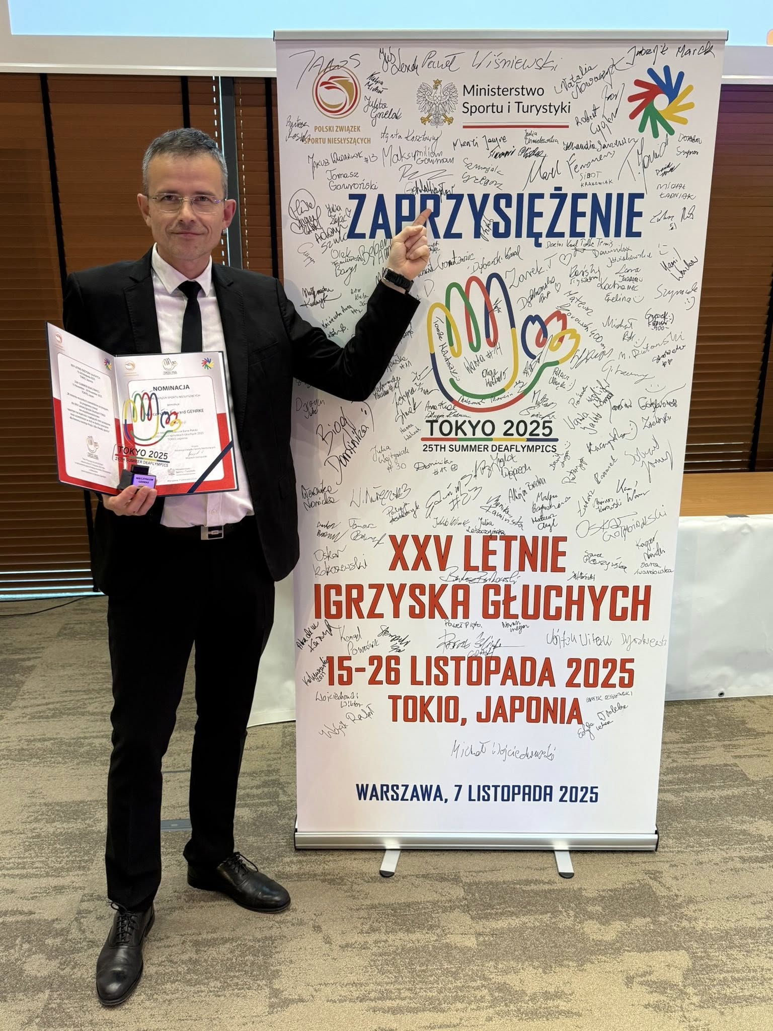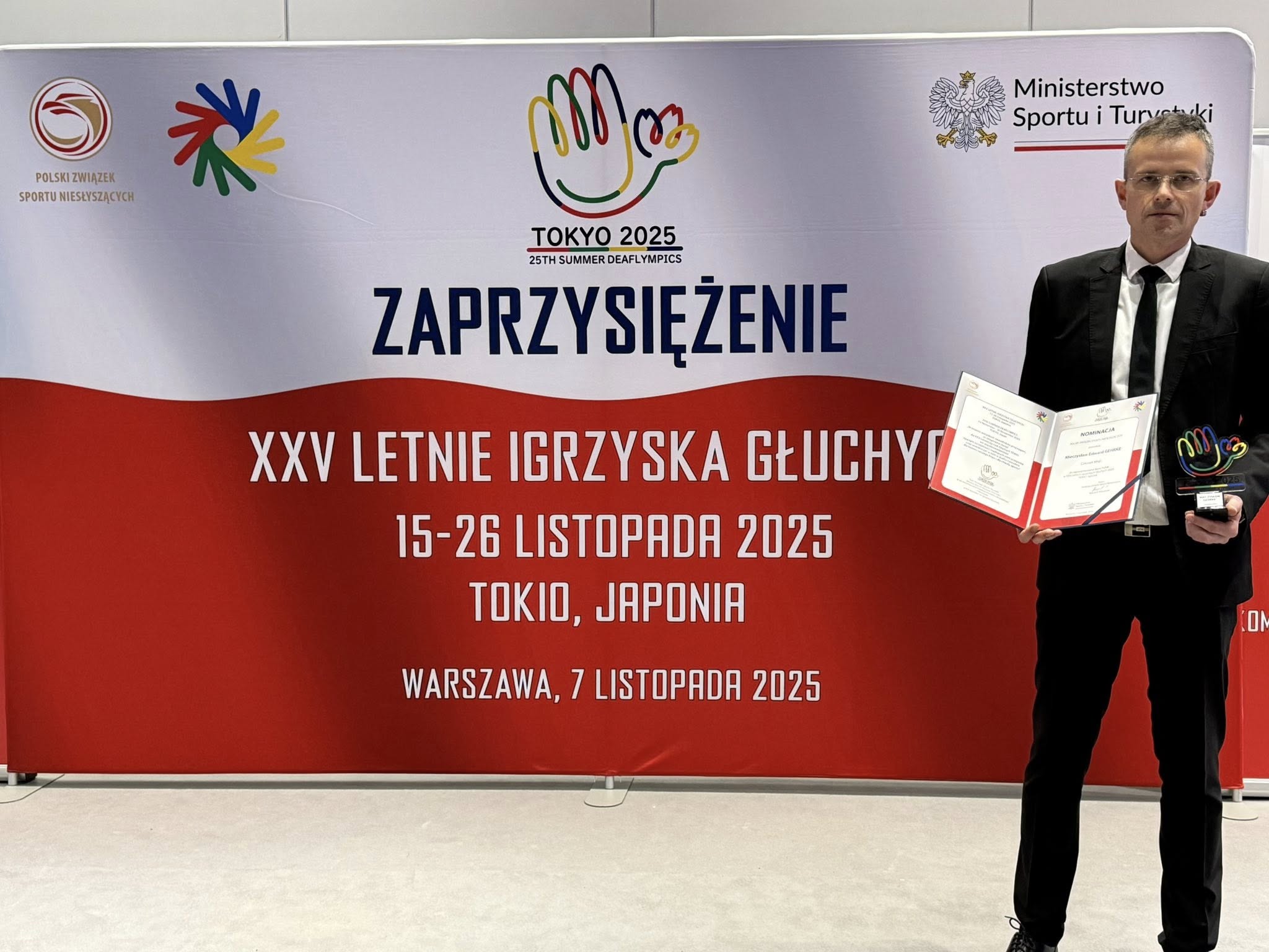 W dniu 7 listopada zostałem oficjalnie zaprzysiężony jako członek Misji Kadry Narodowej Niesłyszących na XXV Letnie Igrzyska Głuchych - TOKIO 2025 - Mieczysław Gehrke, prezes KKSG "REYMAN" Kraków.